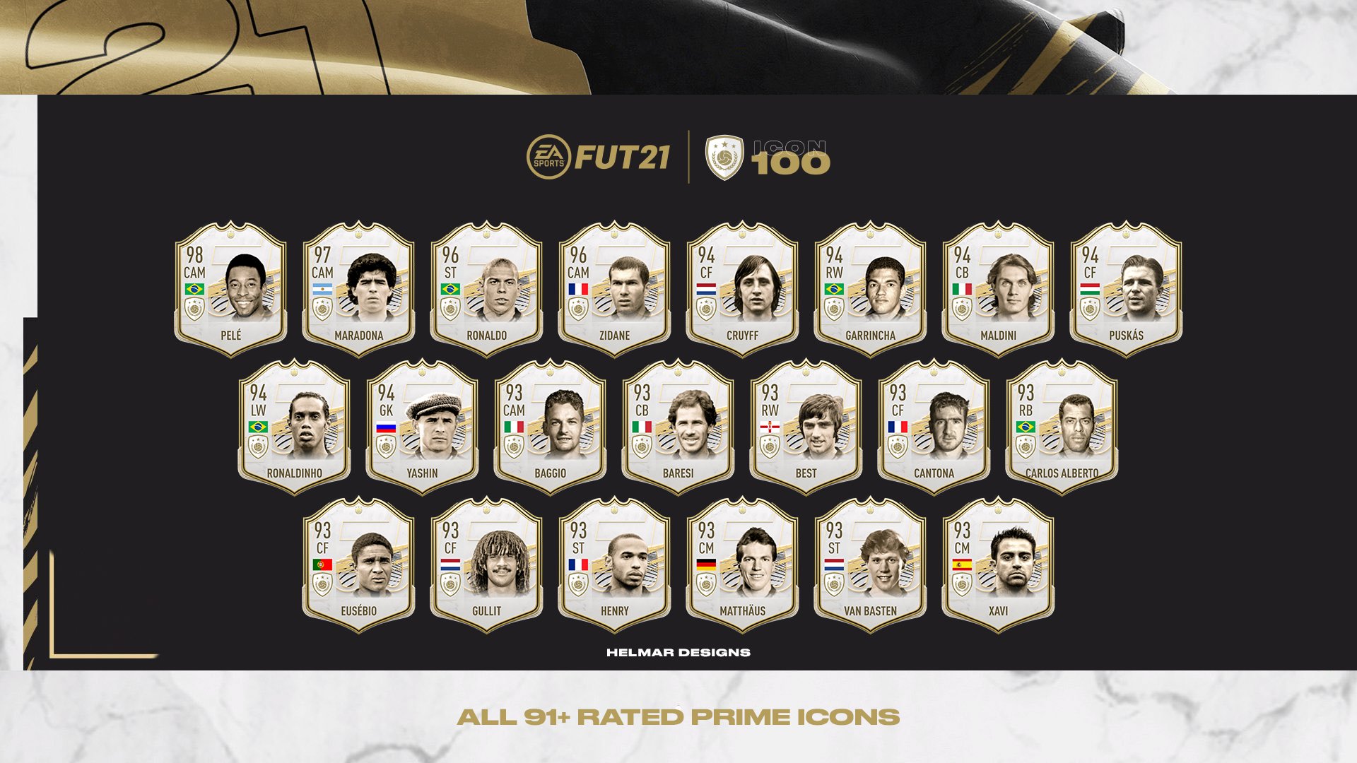 Tier list for all 101 prime icon moments in fifa 21. Fifa 21 introduces 11 brand new icons to the fut (fifa ultimate team) mode to the already existing 89 special players featured in the previous installment of the series, bringing the total number of players to 100. Fifa 16 fifa 17 fifa 18 fifa 19 fifa 20 fifa 21. You can only imagine what the man it's named after's goals were like. The fifa ''puskás'' award is given to the scorer of the best goal each year.